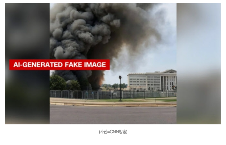 제목 : AI가 만든 美국방부 폭발 가짜사진 트위터서 유포…증시도 '출렁'